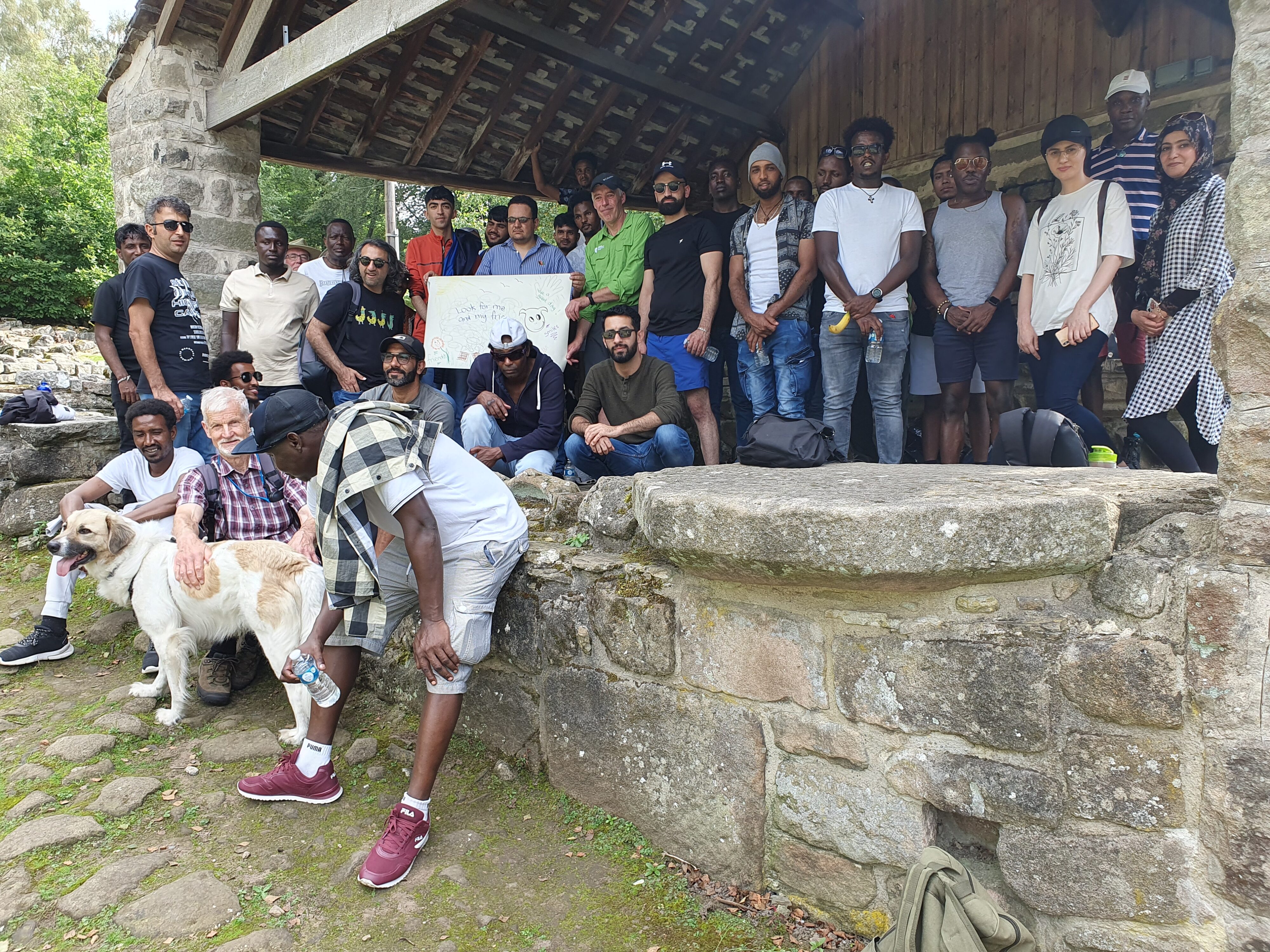 Not even the high humidity sparked by the country’s record temperature could dampen the curiosity and excitement of a 35-strong male-dominated group of refugees and asylum seekers who enjoyed a guided 2-hour walk with some uphill walking in a prime section of the Peak District National Park near Grindleford train station.